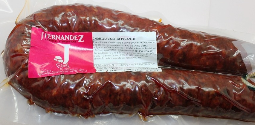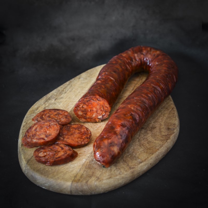 Nuestro sabor tradicional de pueblo elaborado artesanalmente con magro de cerdo y carne de vacuno mayor, sal, ajo y pimentón De la Vera.